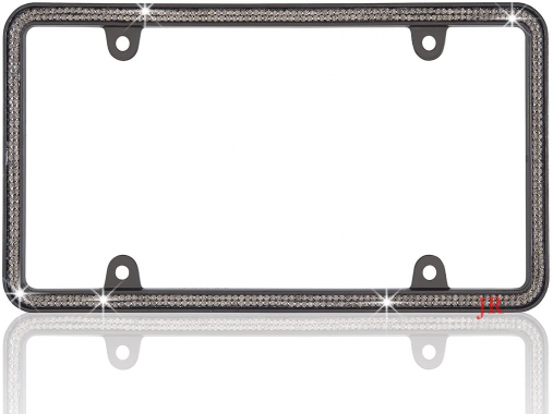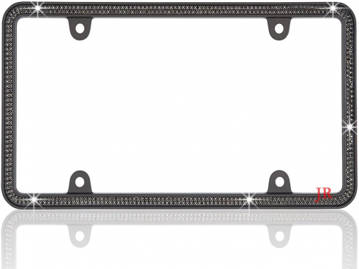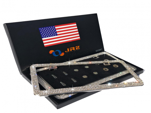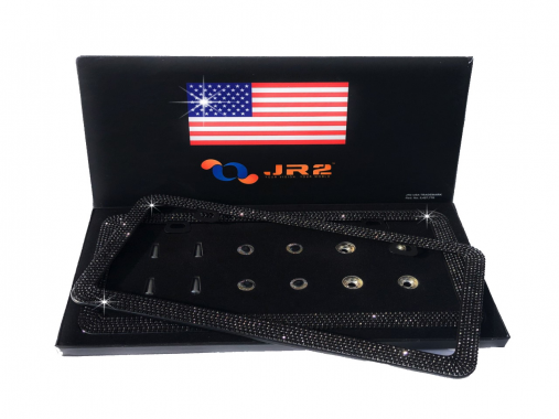JR2 Luxury Handmade Premium Rhinestone Metal License Plate Frame with Gift Box+Free Premium Diamond Anti-Theft Screw Cap(BLACK)