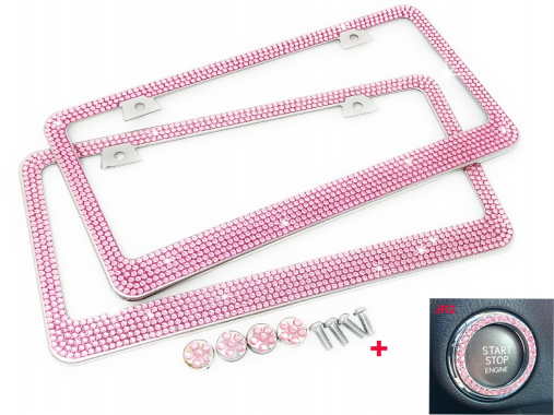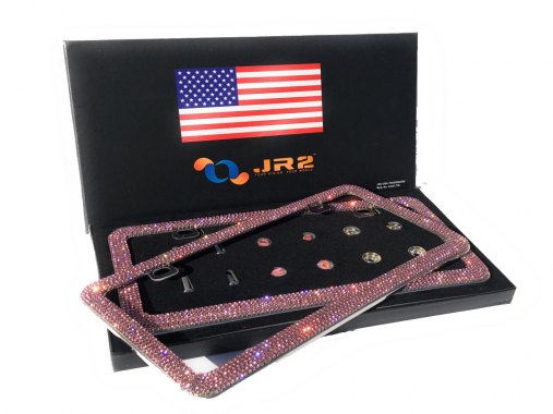JR2 Luxury Handmade Premium Rhinestone Metal License Plate Frame with Gift Box+Free Premium Diamond Anti-Theft Screw Cap(PINK)