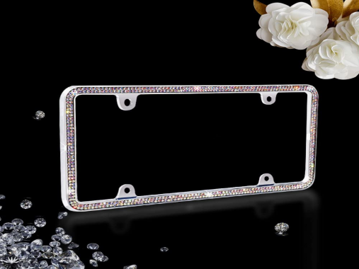 JR2 500 Super Bling Glass Crystals Chrome Metal License Plate Frame+Free Caps (Aurora)