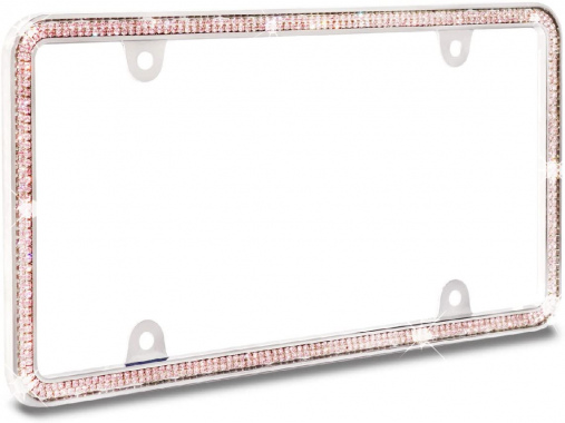 JR2 Shining Double Row Crystal Metal License Plate Frame+Free Screw Caps