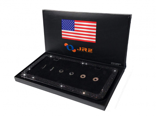 JR2 Luxury Handmade Premium Rhinestone Metal License Plate Frame with Gift Box+Free Premium Diamond Anti-Theft Screw Cap(BLACK)