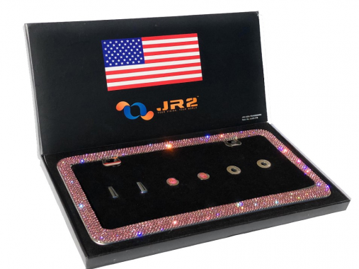 JR2 Luxury Handmade Premium Rhinestone Metal License Plate Frame with Gift Box+Free Premium Diamond Anti-Theft Screw Cap(PINK)