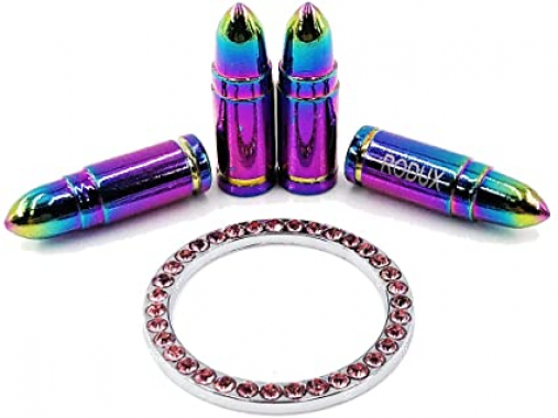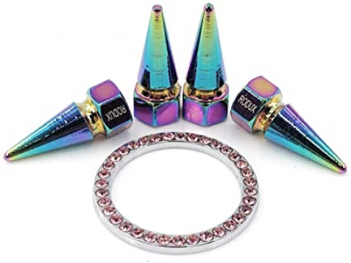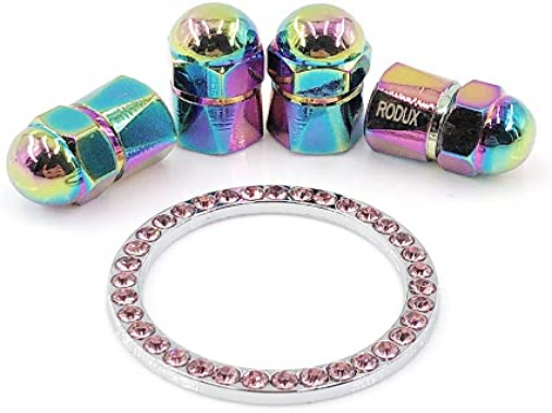 JR2 Neon Color Metal Valve Cap with Pink Ring Emblem (Two Tone)